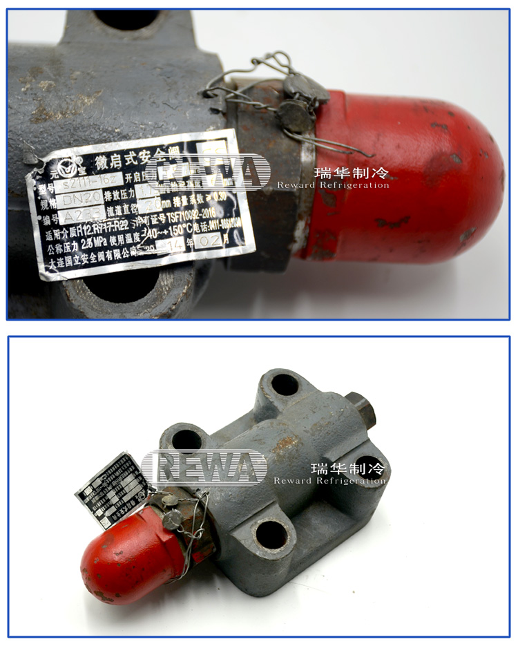 工作原理:安全閥彈簧的壓力和吸氣壓力作用于下部閥盤上,而排壓則作用于上部,當(dāng)排壓超過安全彈簧壓力和吸氣壓力之和一定值時(shí),閥盤就開啟,使排氣腔與吸氣腔相通,排氣壓力因而迅速下降。安全閥的開啟壓力設(shè)定值為:R22和R17為1.57Mpa。